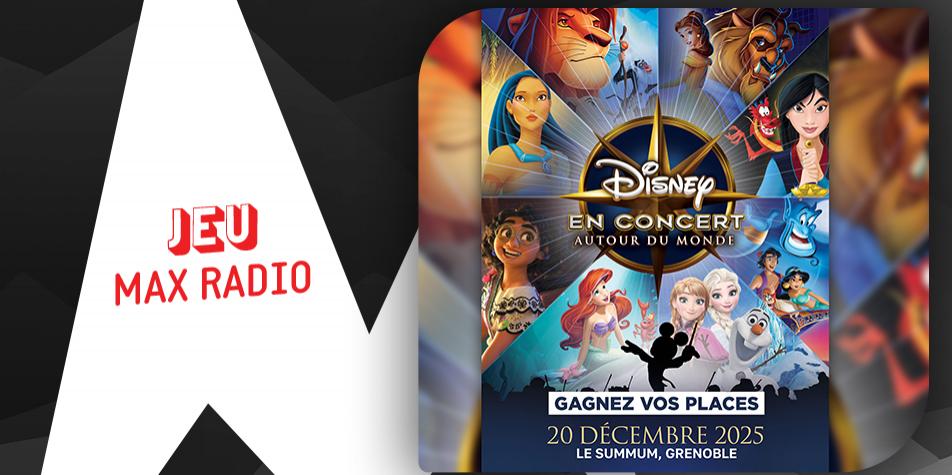 Cette semaine, Max Radio vous offre vos places pour “Disney en concert – Autour du monde”, samedi 20 décembre 2025 à 20h, au Summum à Grenoble.