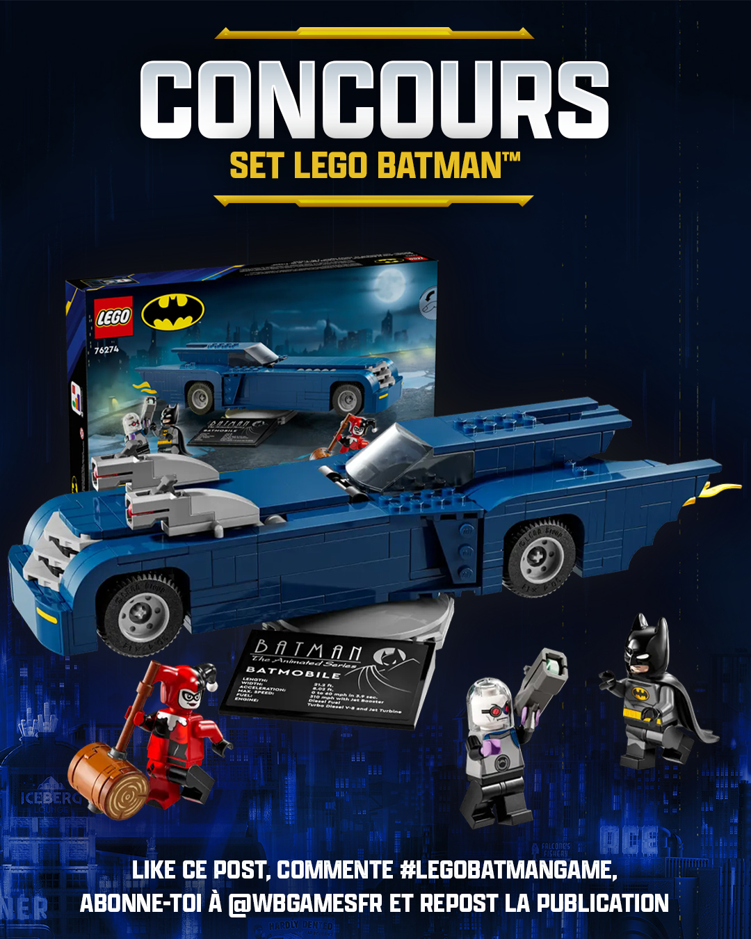 Concours X : follow le compte + retweet + aimez la publication + commentez la publication avec #LEGOBatmanGame.