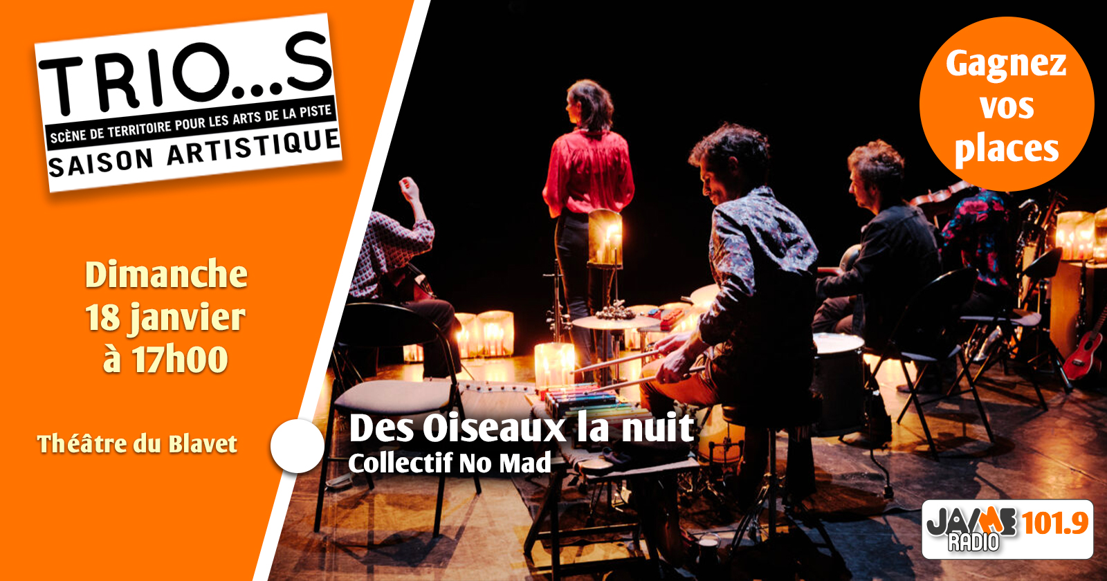 Gagnez vos places pour “Des oiseaux la nuit” par le Trio…s ! - Jaimeradio