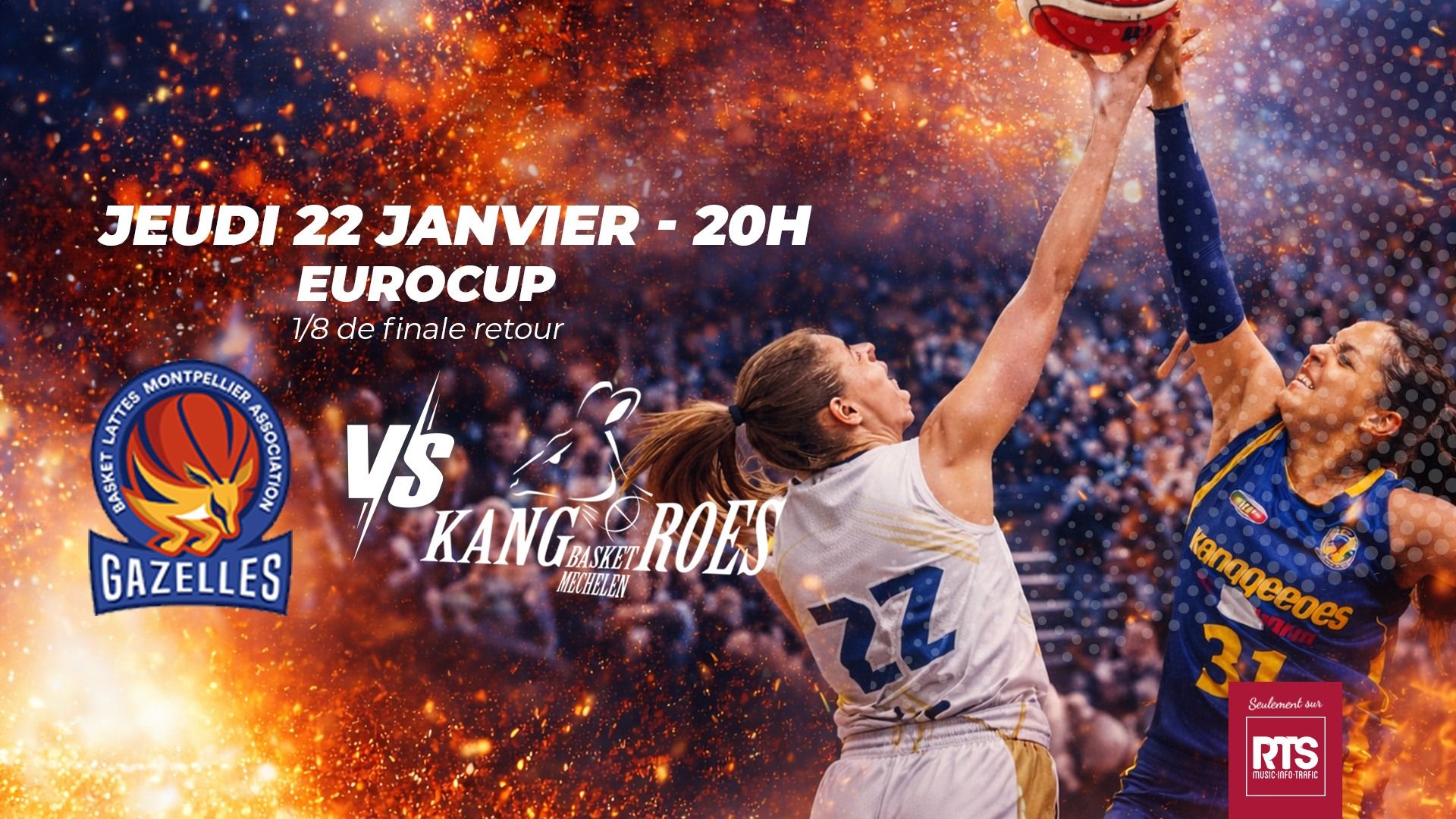 Participez gratuitement au jeu RTS et tentez de gagner Des invitations pour le match de basket féminin BLMA / Kangoeroes Mechelen le 22 janvier à Lattes (34).