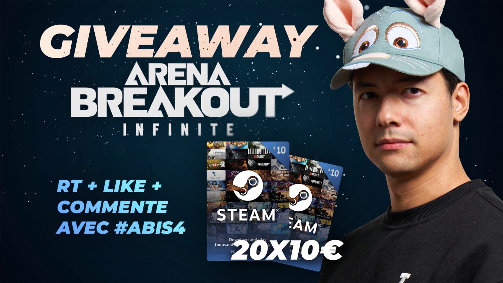 RDV demain à 19h30 pour tester la nouvelle saison d'Arena Breakout: Infinite avec @CHOWH1_ & @FRSkyRRoZ 👊 Pour fêter le lancement on vous offre 20 cartes cadeaux Steam d'une valeur de 10€ chacune 🔥 Pour participer : ❤️ Like 🔁RT ✍️Commente avec #ABIS4 TAS 16/01 Publicité