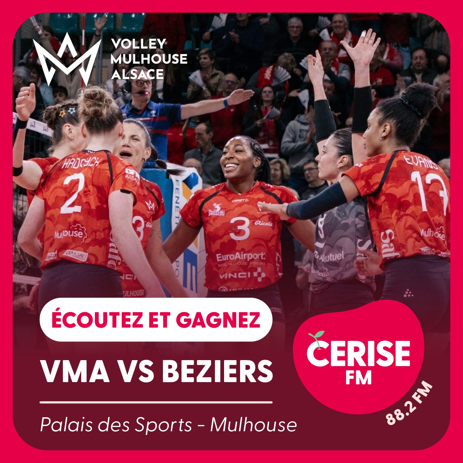 Remportez vos invitations pour le match de volley VMA contre Beziers le 24 janvier à Mulhouse. Une expérience sportive inoubliable vous attend avec Cerise FM.