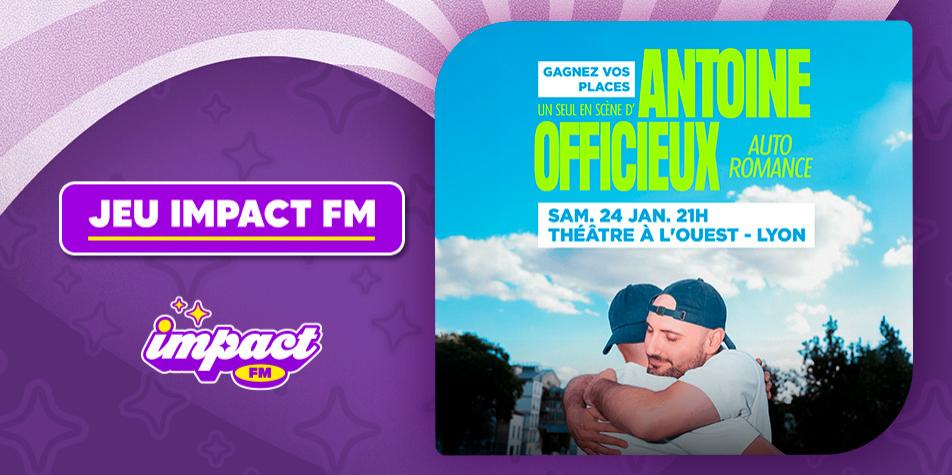 Cette semaine, Impact FM vous offre vos places pour le spectacle "Auto-romance” d’Antoine Officieux, samedi 24 janvier 2026 à 21h au Théâtre à l’Ouest à Décines.