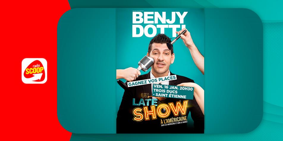 Cette semaine sur Radio SCOOP, gagnez vos places pour le spectacle "Un late show à l’américaine" de Benjy Dotti aux Trois Ducs de Saint-Etienne, vendredi 16 janvier 2026 à 20h30.