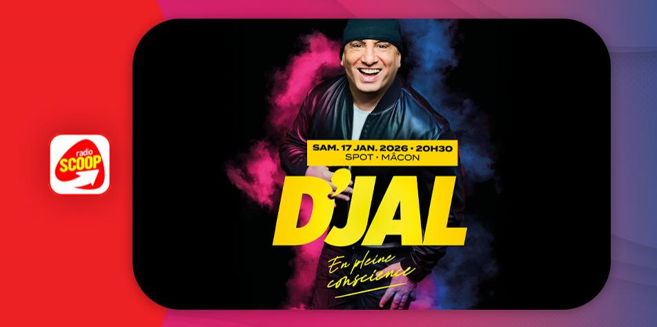 Cette semaine, Radio SCOOP vous offre vos places pour le spectacle “En pleine conscience” de D’Jal au Spot de Mâcon, samedi 17 janvier 2026 à 20h30.