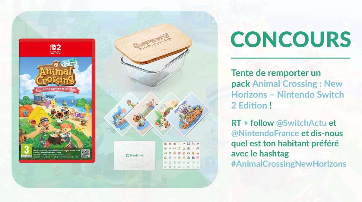 #CONCOURS - Tente de remporter un pack Animal Crossing : New Horizons – Nintendo Switch 2 Edition ! Pour participer : 🔁 RT ce tweet 👉 FOLLOW @SwitchActu et @NintendoFrance 💬 Dis-nous quel est ton habitant préféré avec le hashtag #AnimalCrossingNewHorizons Composition du pack