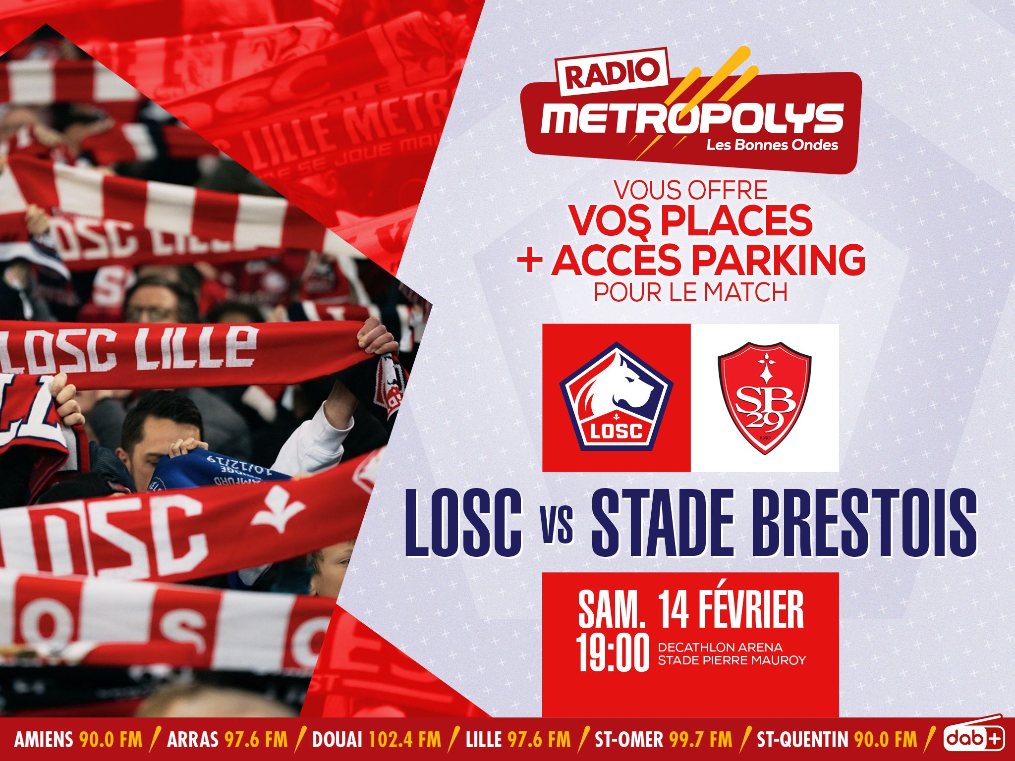 Gagnez 2x2 invitations pour LOSC/Brest le 14 février - Metropolys