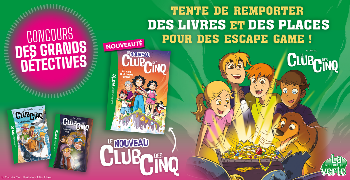 • 5 lots composés de 3 romans jeunesse "Club des Cinq" + 2 invitations individuelles pour des sessions d'escape game