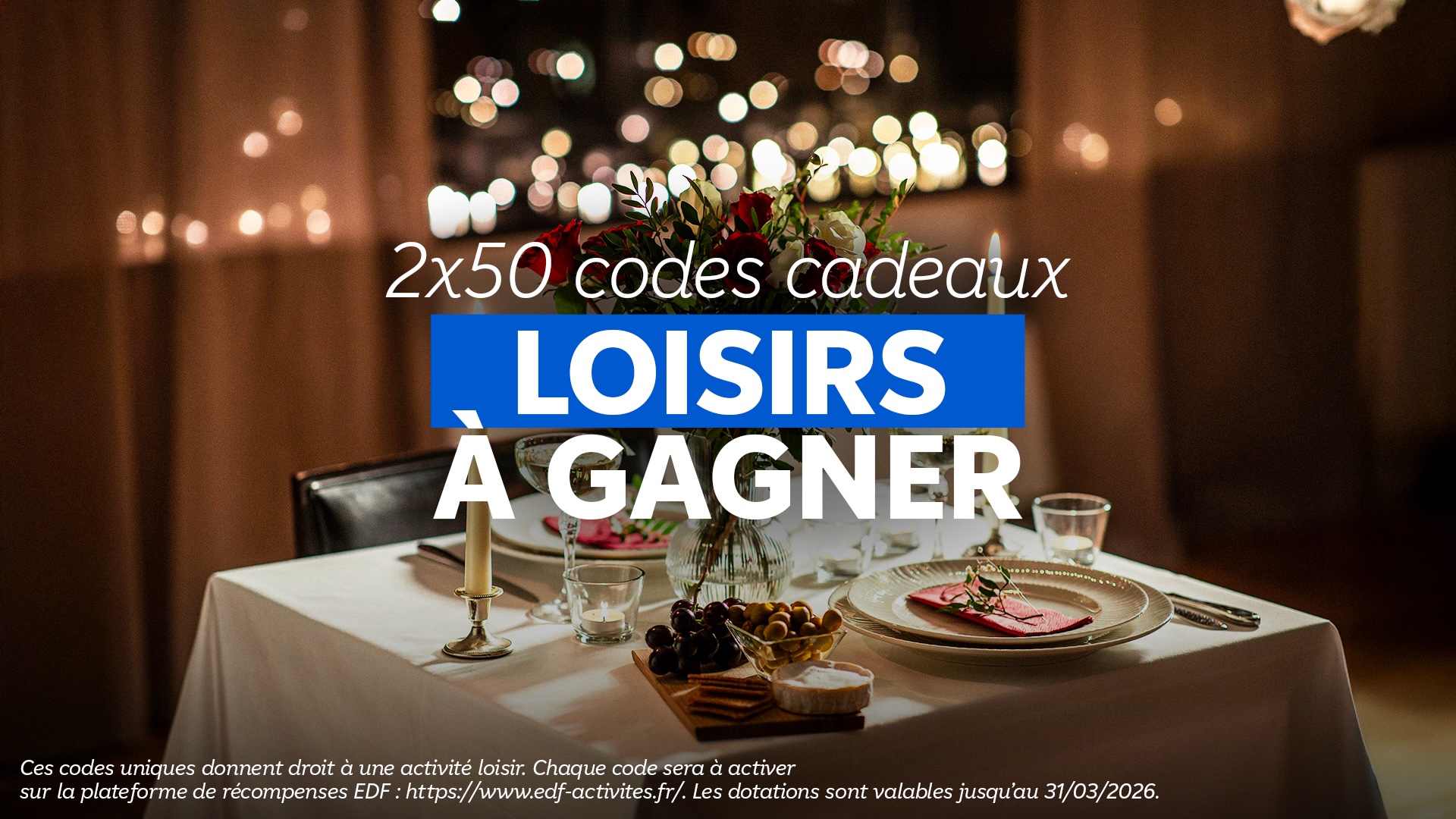 • 1 lot de 2 codes loisirs de 50 euros