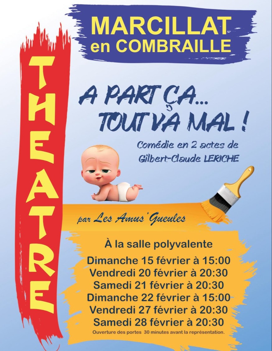• Des invitations pour la pièce de théâtre "A part ça… Tout va mal" du 15 au 28 février à Marcillat (63)