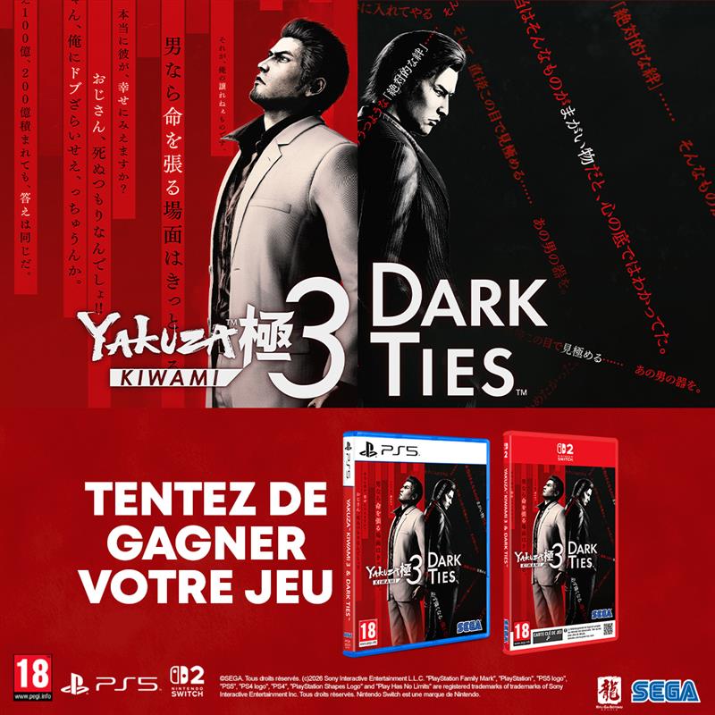 • 1 jeu vidéo "Yakuza Kiwami 3 & Dark Ties"