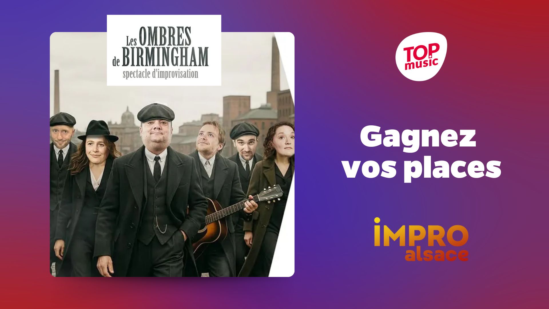 Jeu Top Music n°453909 pour gagner 1 lot de 2 invitations pour le spectacle Les Ombres de Birmingham le 27 février à Strasbourg (67)
