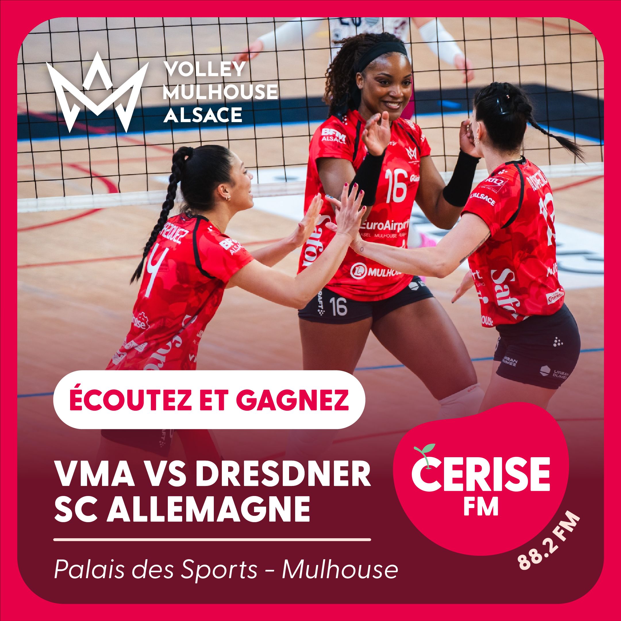 Gagnez des invitations pour le match de volley VMA vs Dresdner SC Allemagne le 25 février à Mulhouse. Ne manquez pas ce rendez-vous sportif exceptionnel avec Cerise FM !
