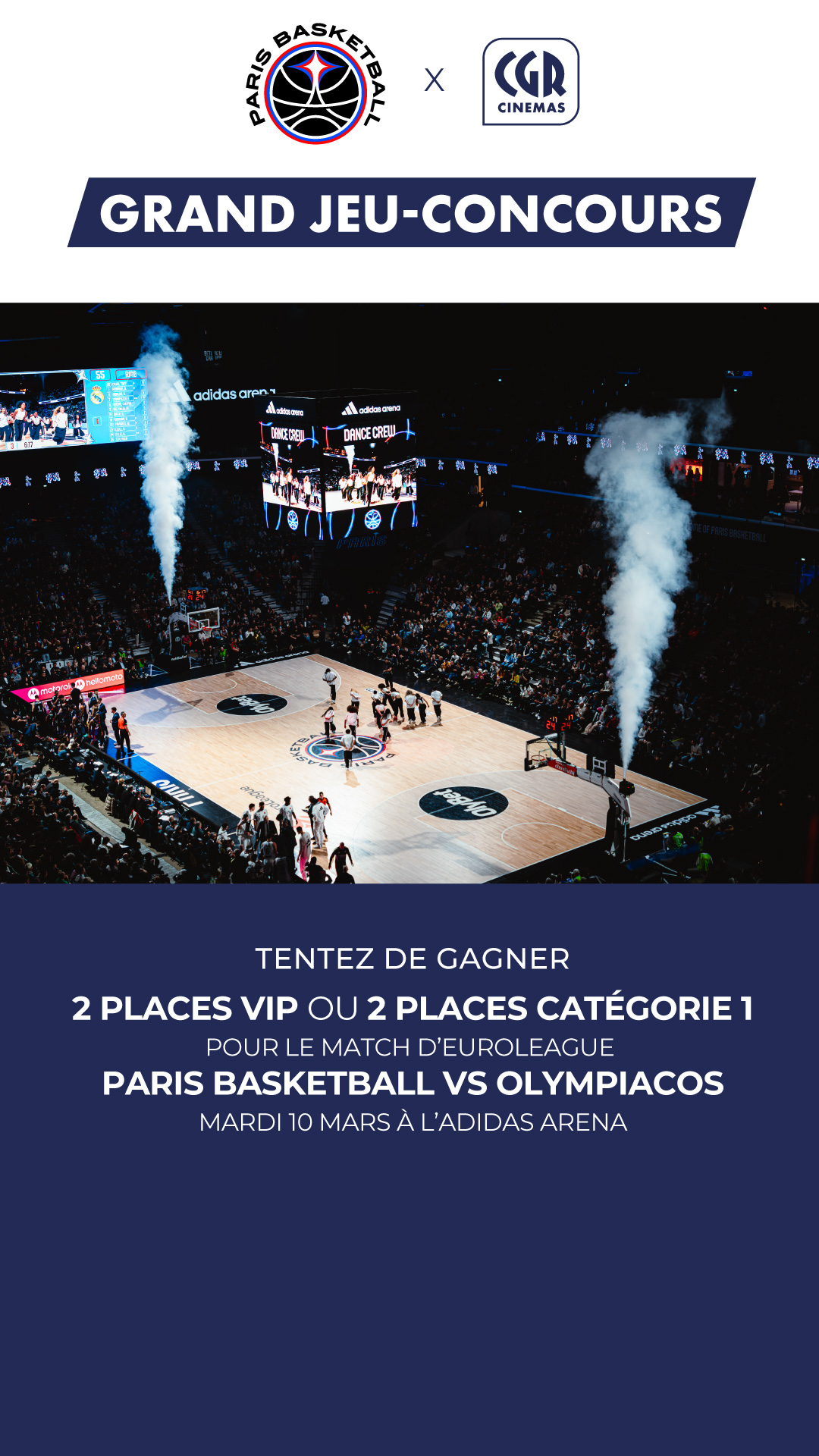 • 1 lot de 2 invitations catégorie 1 pour le match "Paris Basketball / Olympiacos" le 10 mars à l'Adidas Arena à Paris (75) valeur 178 €