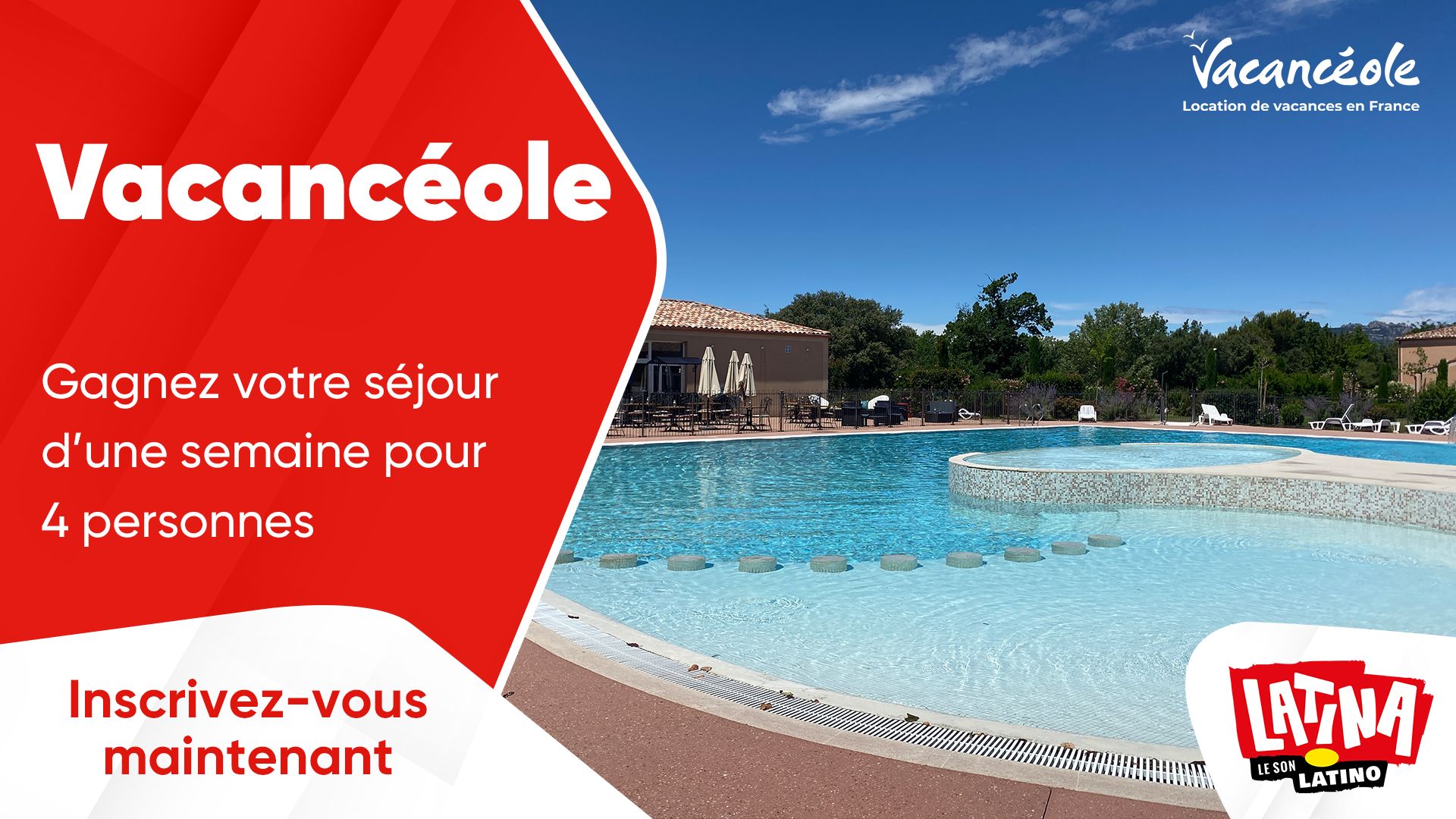 Gagnez un séjour d'une semaine pour 4 personnes dans une résidence Vacancéole. Participez vite au jeu-concours Latina et tentez votre chance !
