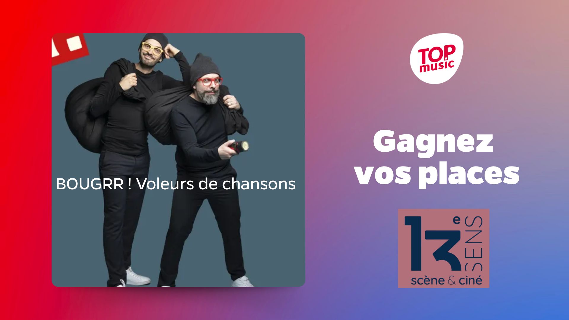 Participez gratuitement au jeu Top Music et tentez de gagner 4 x 4 invitations pour le spectacle Bougrr ! Voleurs de chansons le 07 mars à Obernai (67).