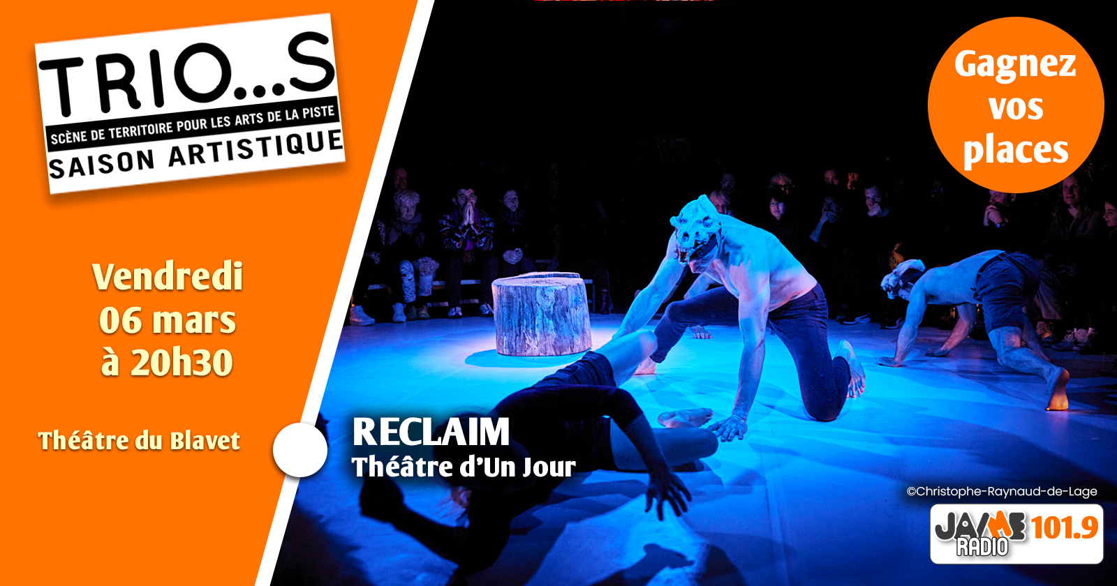 JAIME Radio vous offre vos places pour le spectacle “Reclaim”, le vendredi 06 mars à 20h30 au Théâtre du Blavet, Trio...S.