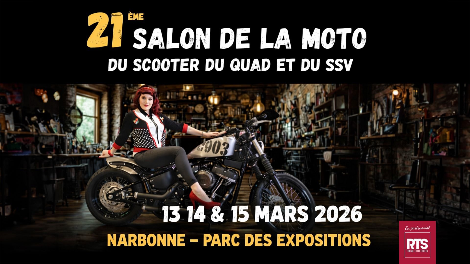 Gagnez des pass week-end pour le Salon de la Moto à Narbonne le 13 mars. Vivez une expérience unique dédiée aux passionnés de deux-roues avec RTS.