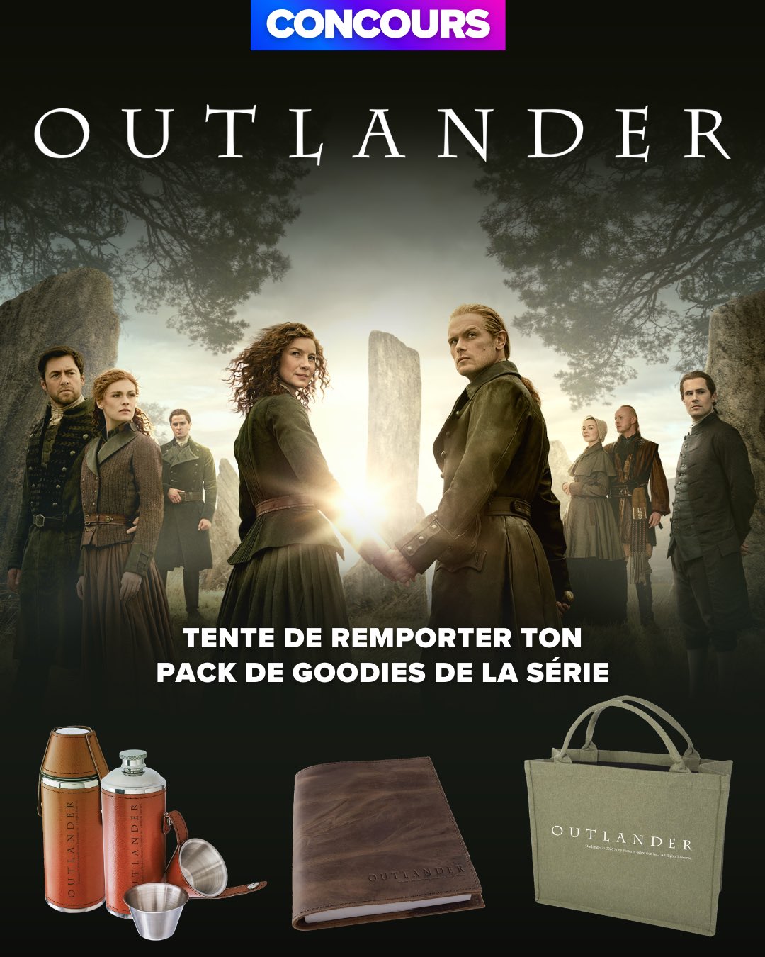 Gagnez un carnet, une flasque et un sac Outlander. Participez vite pour remporter ces produits exclusifs signés Sony Pictures !