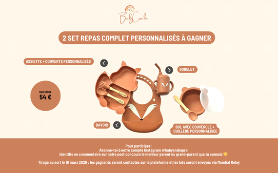 Jeu Enjoy Family n°457767 pour gagner 2 sets de repas bébé personnalisés BabyCrabe (54 euros)