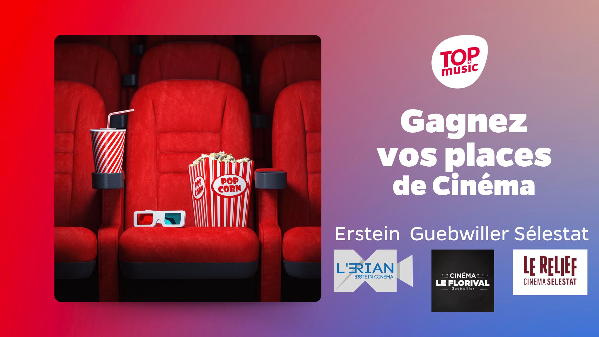 Tentez de gagner des places de cinéma valables à Erstein, Guebwiller ou Sélestat. Participez vite au jeu Top Music et profitez d’une sortie cinéma inoubliable !
