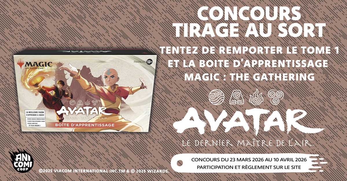 • 3 lots composés de 1 manga "Avatar le dernier maître de l'air" + 1 boîte d'apprentissage "Magic the Gathering" valeur 48 €