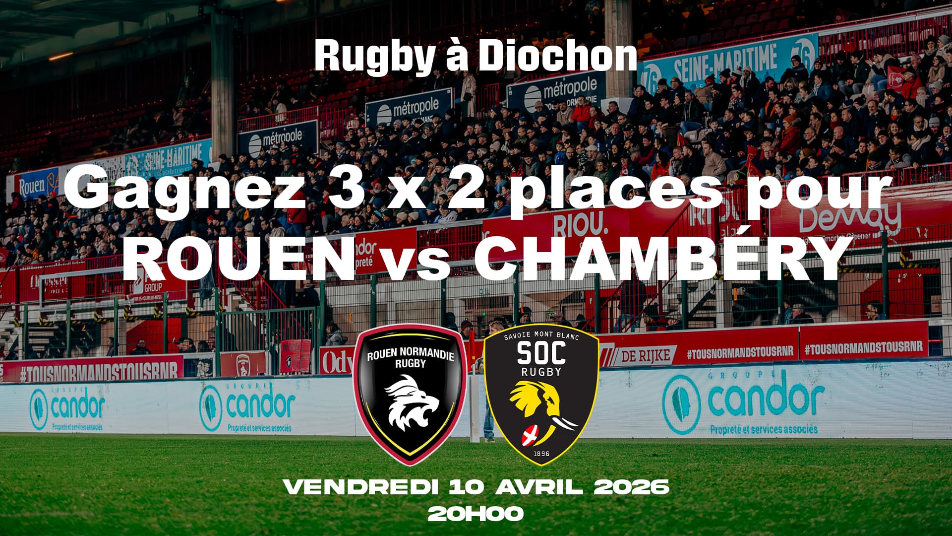 Tentez votre chance et remportez vos places pour assister au choc entre Rouen Normandie Rugby et Chambéry, le 10 avril à 20h. Un match à ne surtout pas manquer !