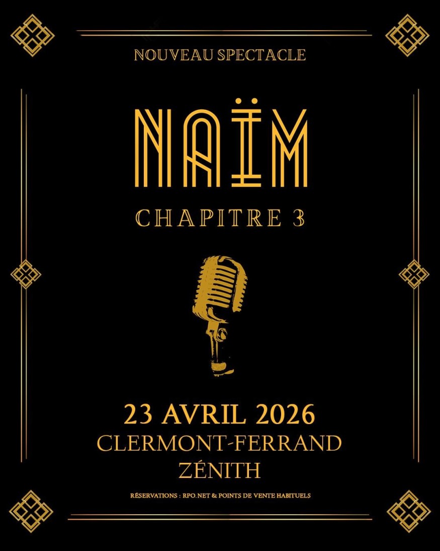 • 1 lot de 2 places pour le concert de Naïm le 23 avril au Zénith d'Auvergne à Clermont-Ferrand (63)