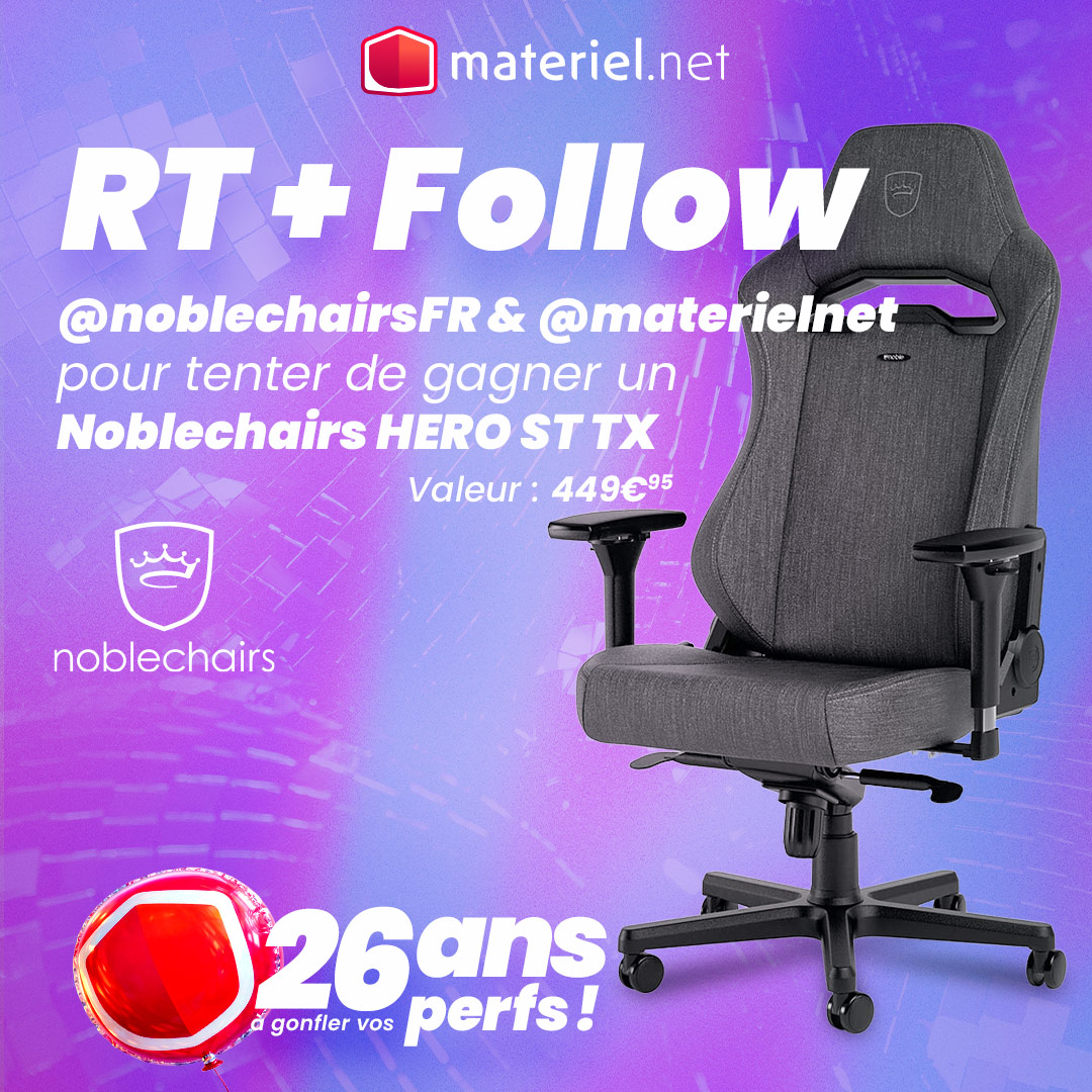 🎁 𝐂𝐎𝐍𝐂𝐎𝐔𝐑𝐒 #26ansMaterielNet 🎁 Un nouveau fauteuil pour ton setup à portée de clics ! ➡️ RT + Follow @noblechairsFR & @materielnet pour participer 🎈 🎰 TAS 09/04 🍀 Bonne chance à toutes et tous ! 👉 https://t.co/D1VcpLEu0v
