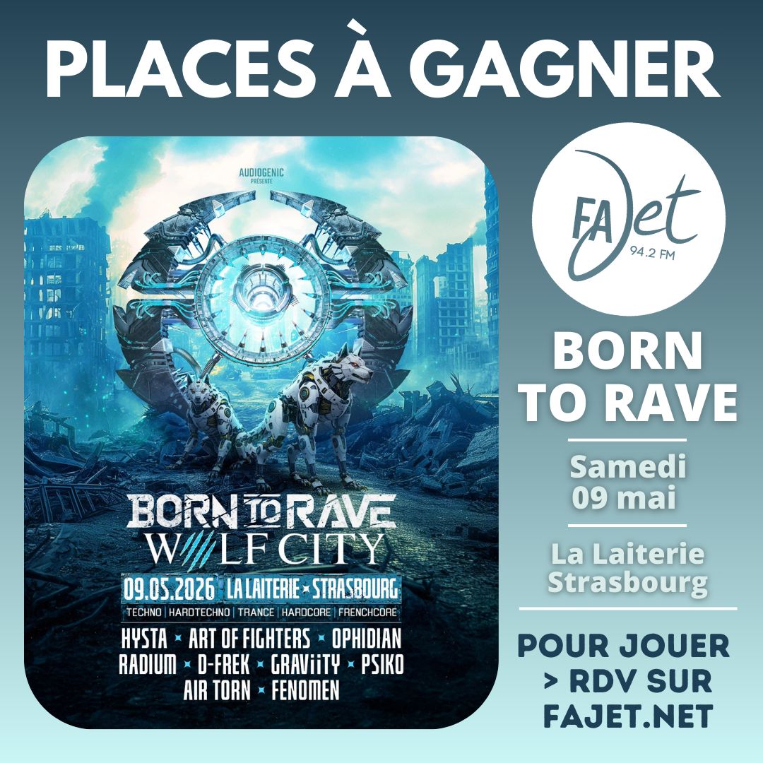 Jeu Radio Fajet n°461061 pour gagner 1 lot de 2 places pour le concert Born To Rave le 9 mai à Strasbourg (67)