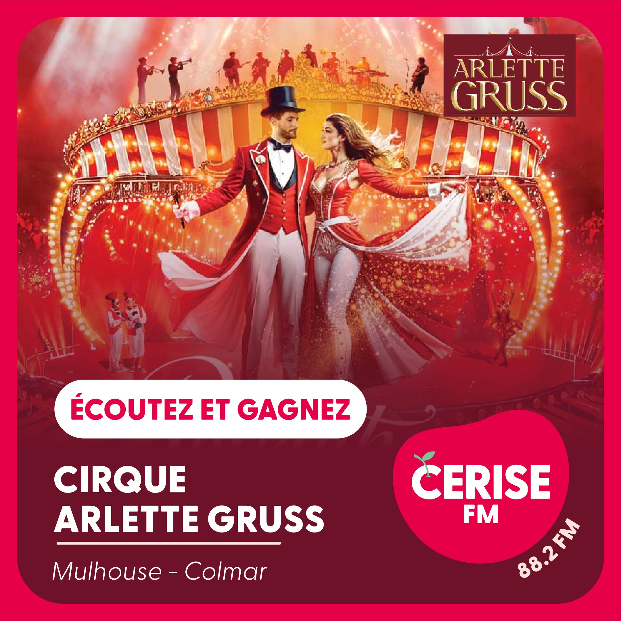 Gagnez vos pass famille pour le spectacle du Cirque Arlette Gruss à Mulhouse et Colmar. Vivez un moment magique en famille grâce à Cerise FM !