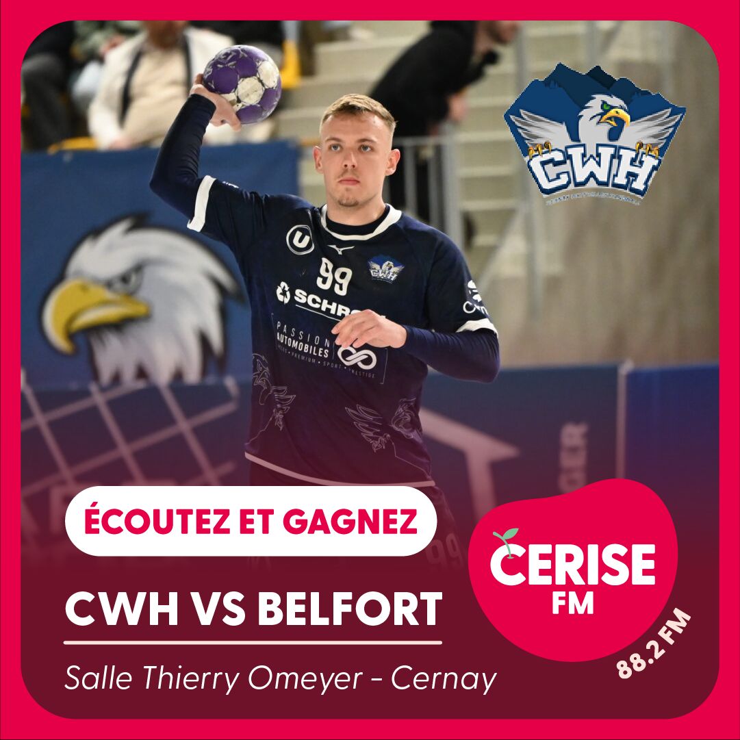 Tentez de gagner des invitations pour le match de handball CWH vs Belfort le 9 mai à Cernay. Écoutez Cerise FM et participez au tirage au sort !