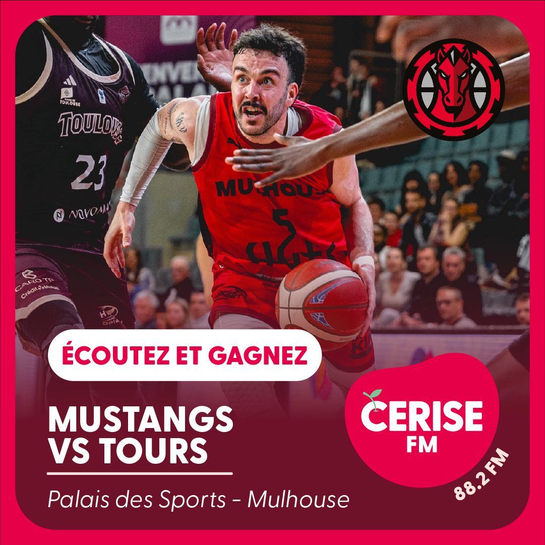 Tentez de gagner des invitations pour le match de basket Mustangs vs Tours le 8 mai à Mulhouse. Écoutez Cerise FM et participez vite !