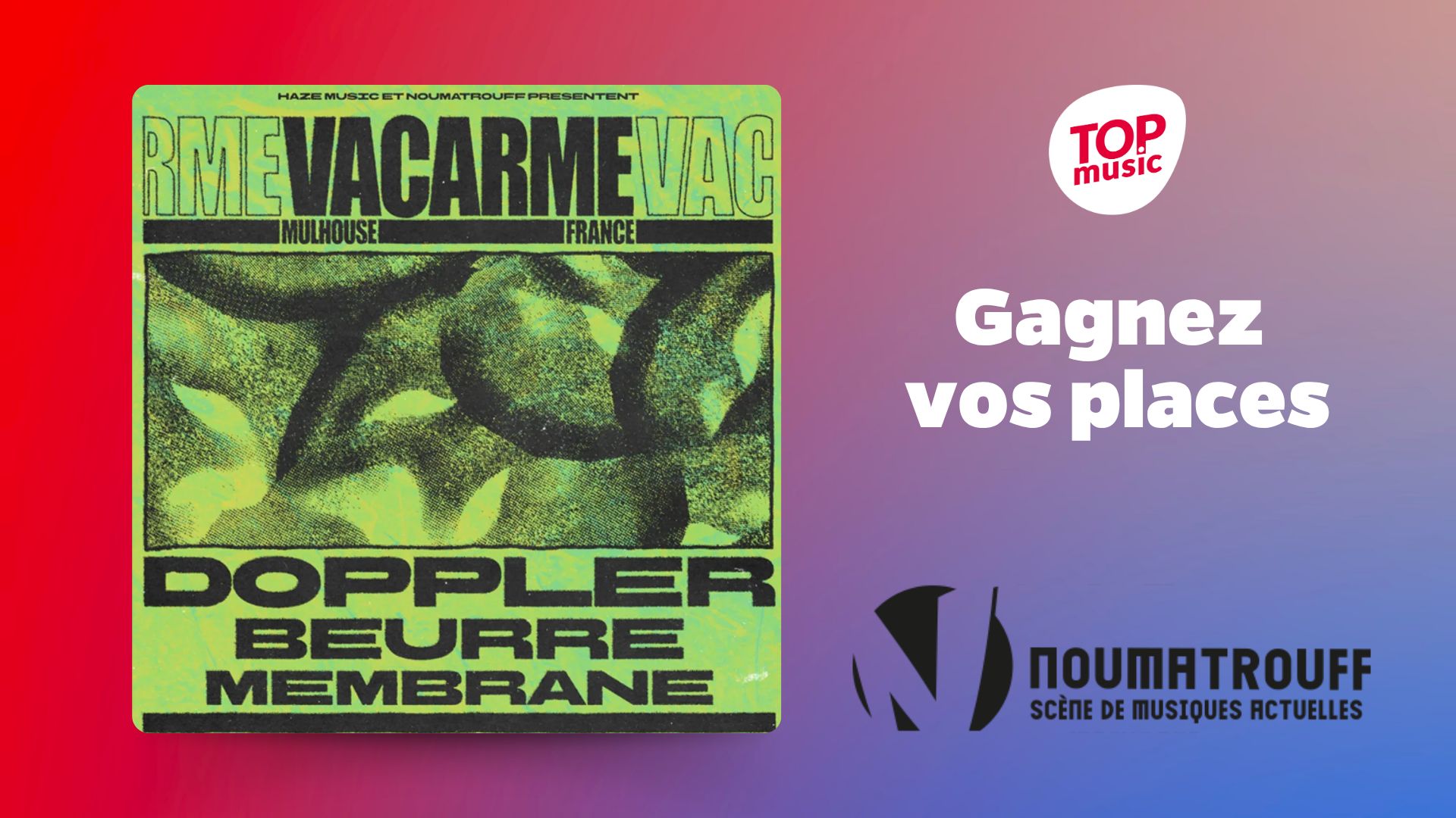 Jeu Top Music n°462129 pour gagner 2 x 2 places pour le concert de Vacarme le 23 mai à Mulhouse (68)