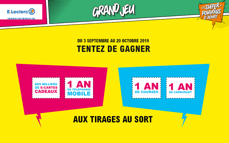 Alors que la précédente opération avait rencontré un énorme succès, les supermarchés et hypermarchés Leclerc relancent le Grand Jeu « Les Super Pouvoirs d'Achat » avec obligation d'achat.