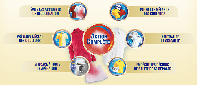 - Neutraliser la grisaille en évitant le dépôt de calcaire sur vos vêtements.