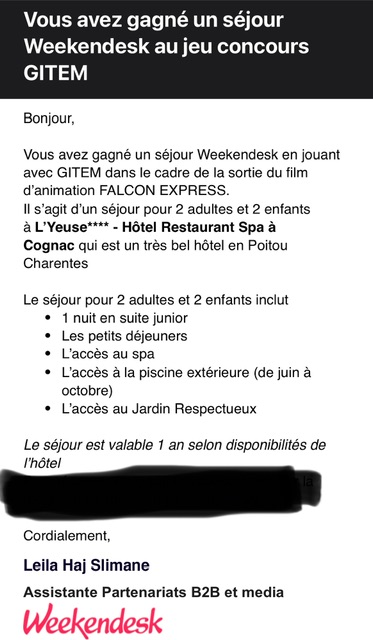 « Gagné 2 places de cinéma pour le film Les orphelins. Merci le génie et BNP Parisbas! »