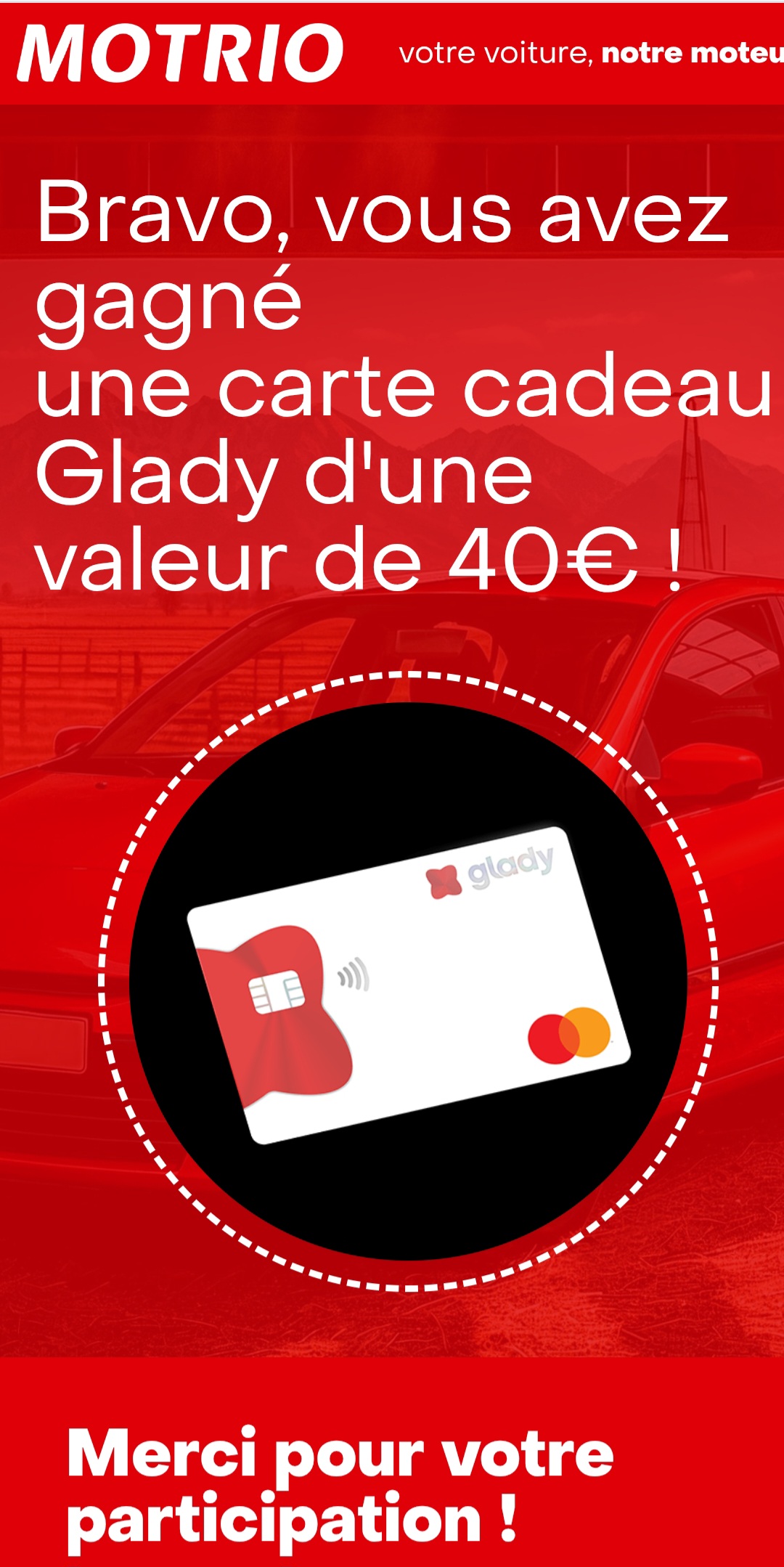 « Gagné aujourd'hui une carte cadeau de 40€ avec Motrio