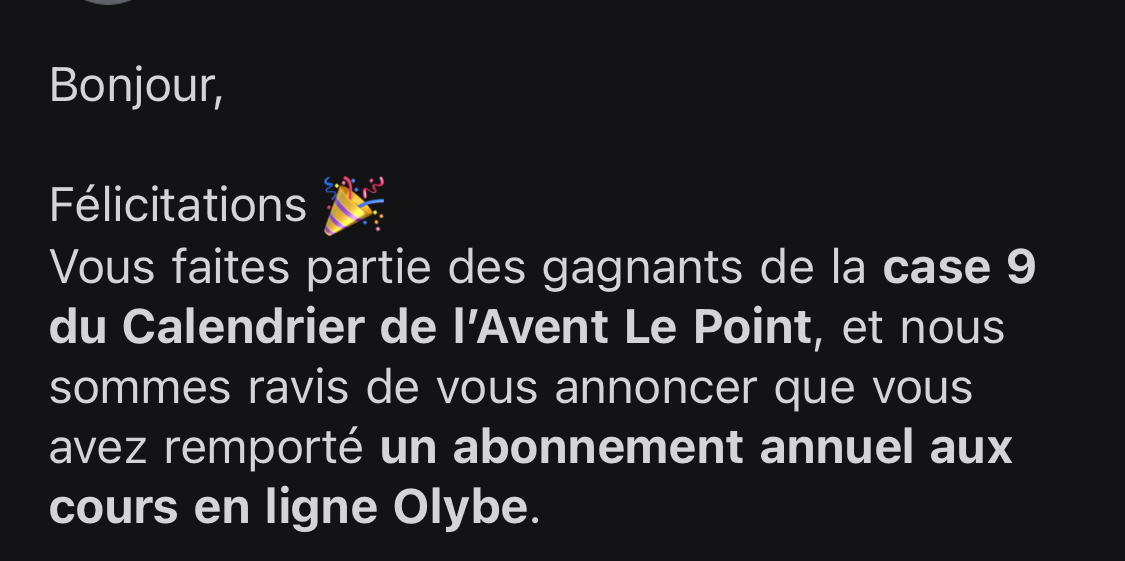 « Mail reçu ce matin via le calendrier de l’avent Le Point trop contente