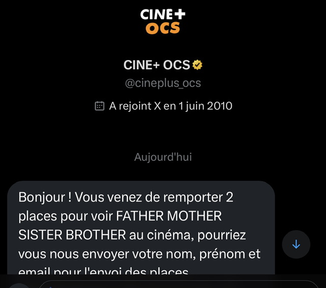 « Gagnées sur X avec OCS ☺️ »
