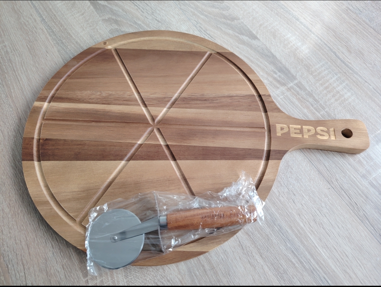 Gagné par bb56 il y a 5 sem« Reçu le kit pizza du jeu concours Pepsi Street Food comprenant une planche à pizza (47,5cm) et une roulette ! Merci le Génie »