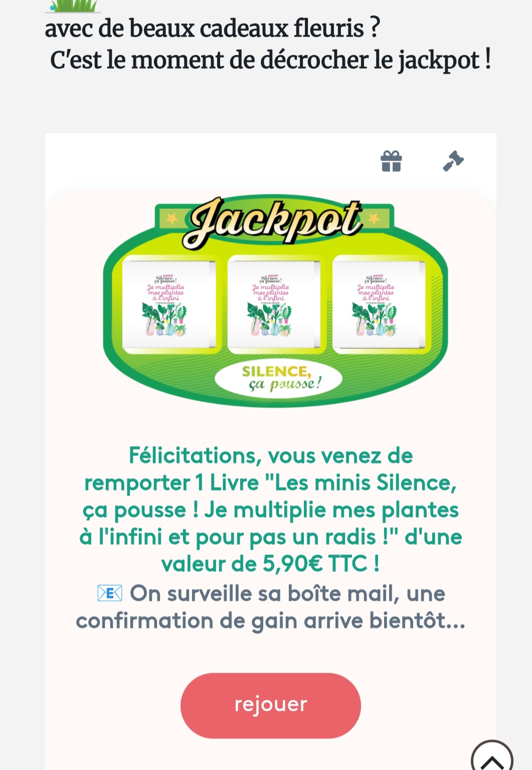 Cadeau gagné : Un livre