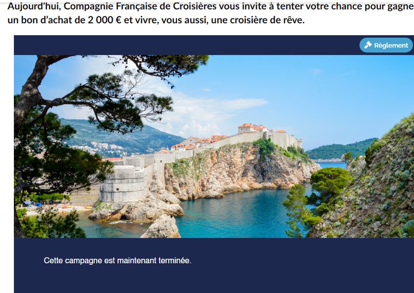 Cadeau gagné : Un coffret CROISIÈRE d'une valeur de 1000€