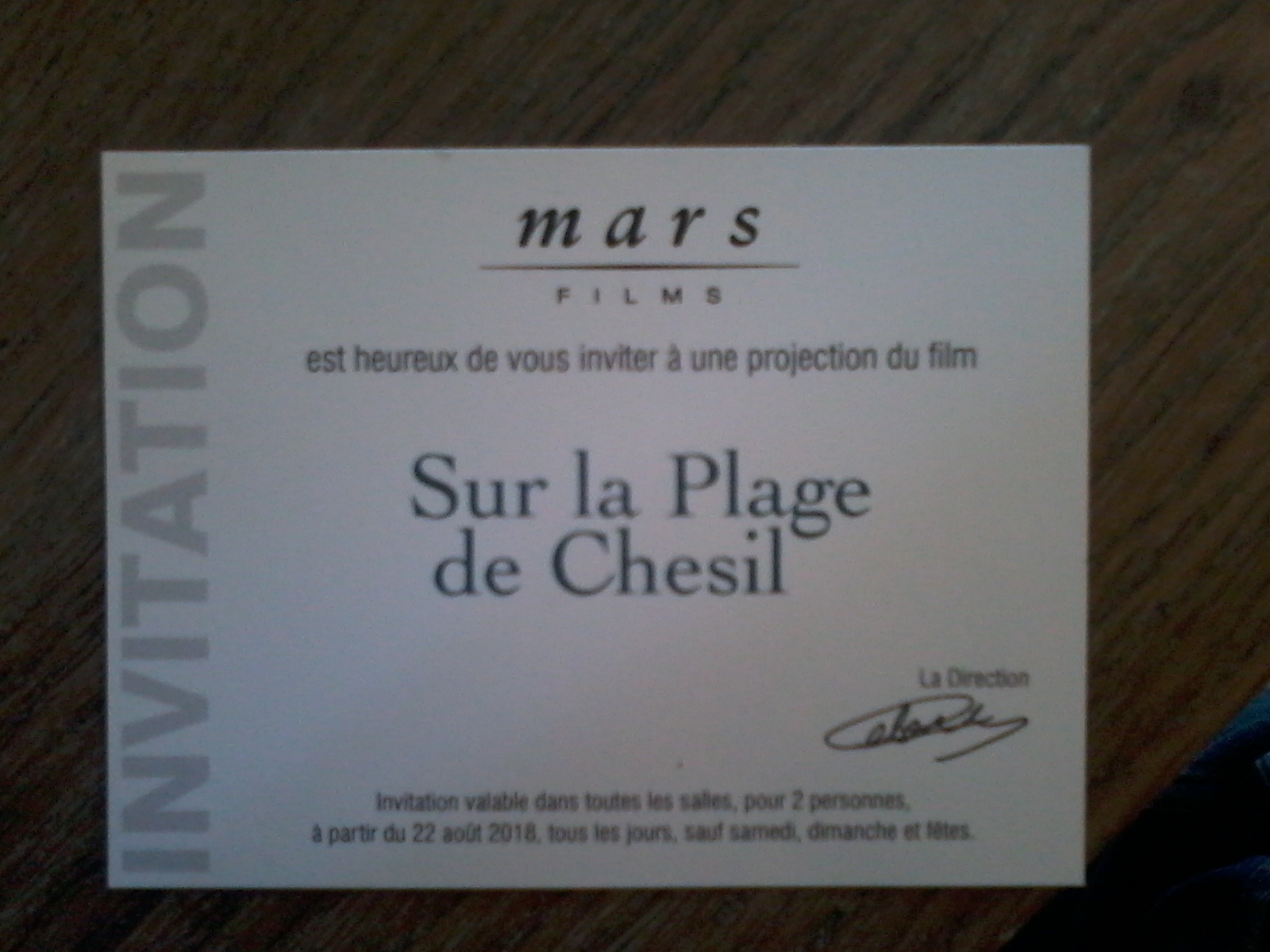 « J'ai reçu par courrier deux places pour le film "Sur la plage de Chesil". »