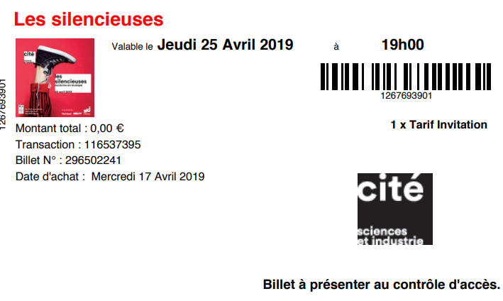 « Lot de 2 invitations pour la soirée "Les Silencieuses" organisé à la "Cité des Sciences et de l'Industrie" concours organisé par Melty.