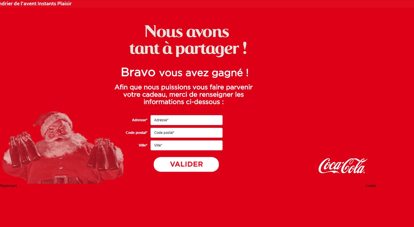 « Gagné une box Coca-Cola. Merci à Instants plaisirs. »