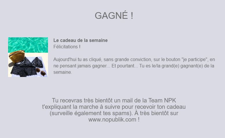 « Gagné une enceinte bluetooth à l'instant gagnant Tropial old nick il y a quelques jours