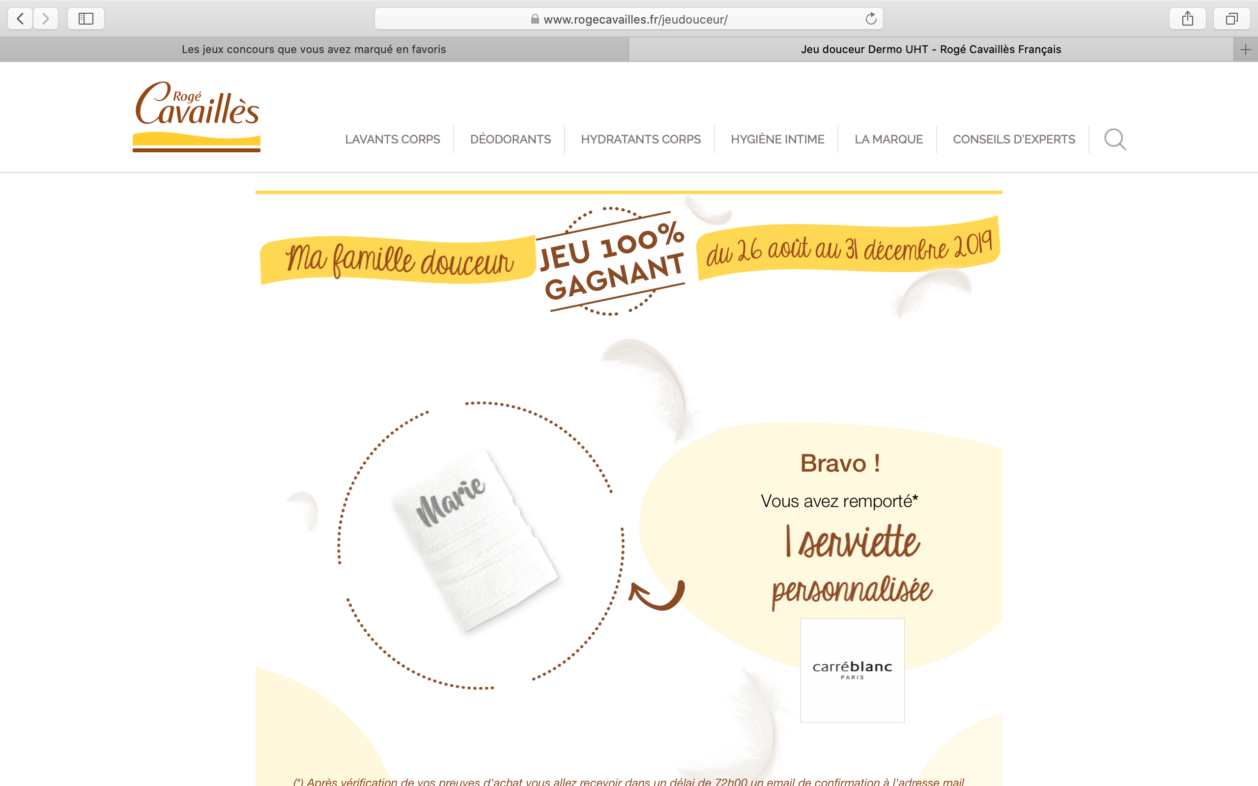 Cadeau gagné : 1 serviette de toilette Carré Blanc (valeur 25€)