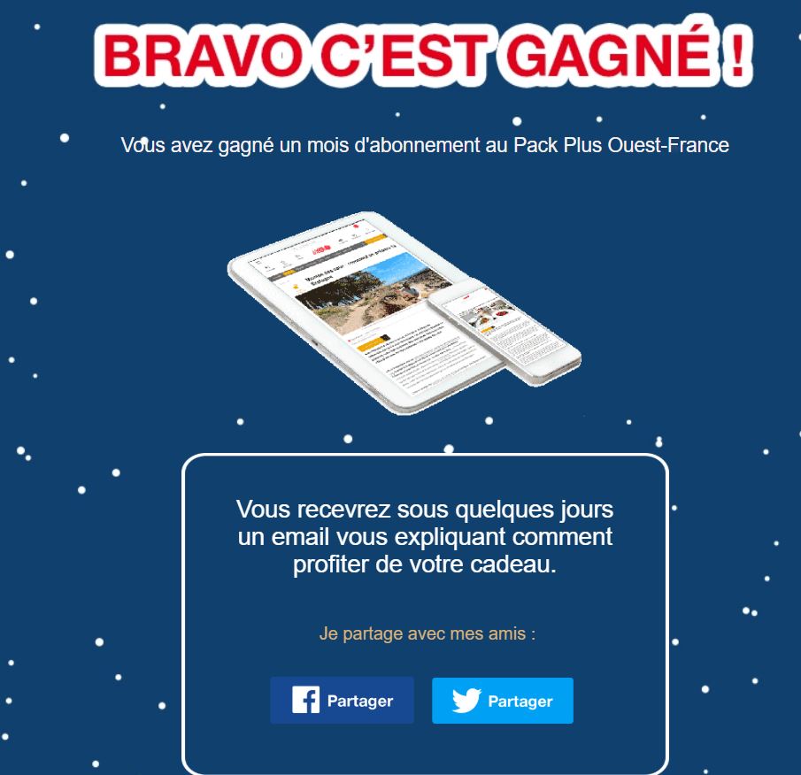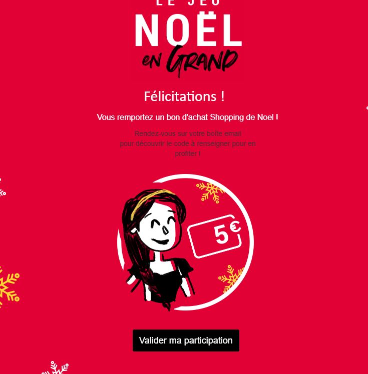 « Bravo à toi tu fais partie des grands gagnants de Jeu de l'Avant Noël !