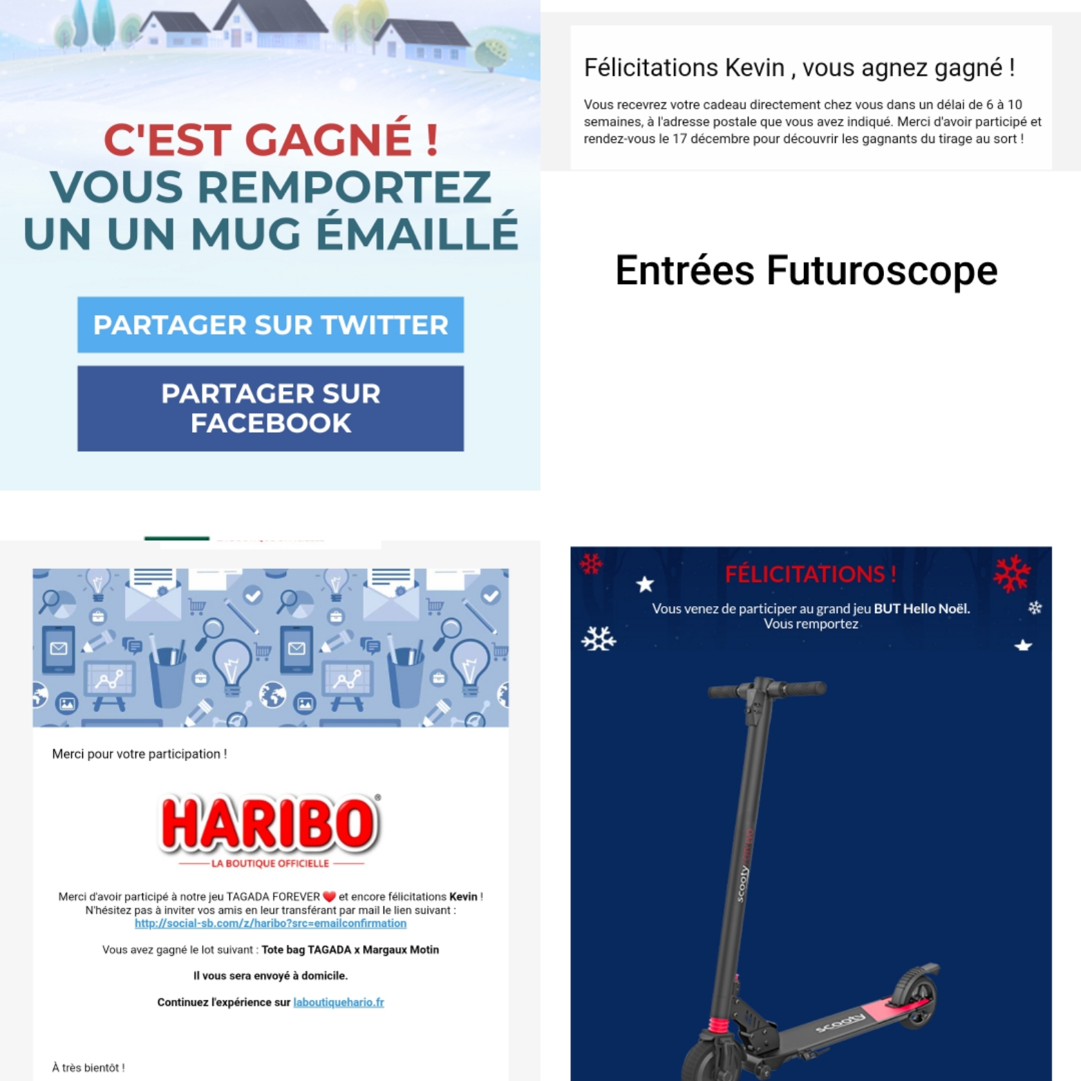 « Bonjour, par la présente je vous informe que vous êtes le gagnant de notre jeu Facebook – La Toussaint.